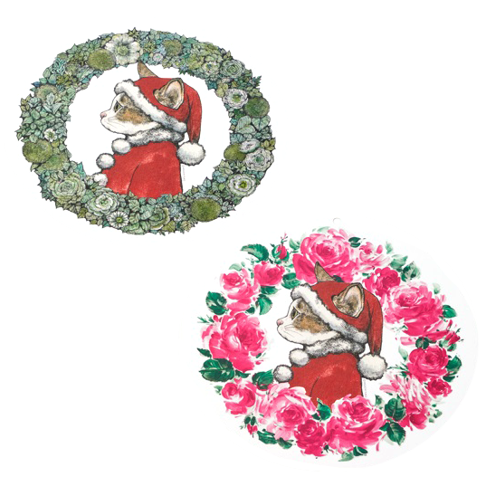 ヒグチはコラボレーションにあたり、「クリスマスの絵をあまり描いたことがありませんでしたが、サンタの服を着た絵を描いたらとても楽しかったです。光栄にも高島屋の花輪にも入れていただき、とてもうれしいです。」とコメントを寄せています。